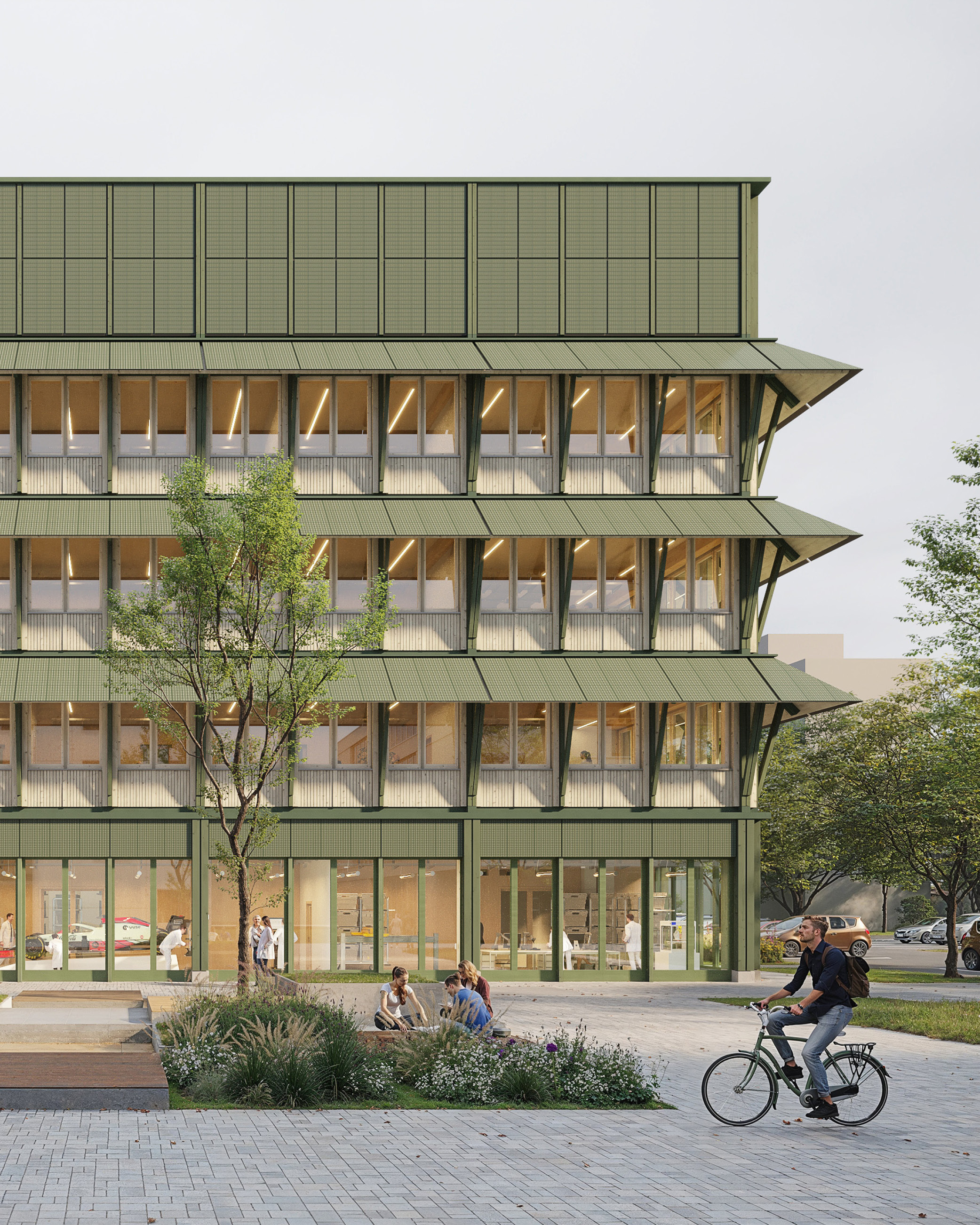 Neubau eines Holzhybridgebäudes mit Photovoltaikfassade für die Hochschule Konstanz.