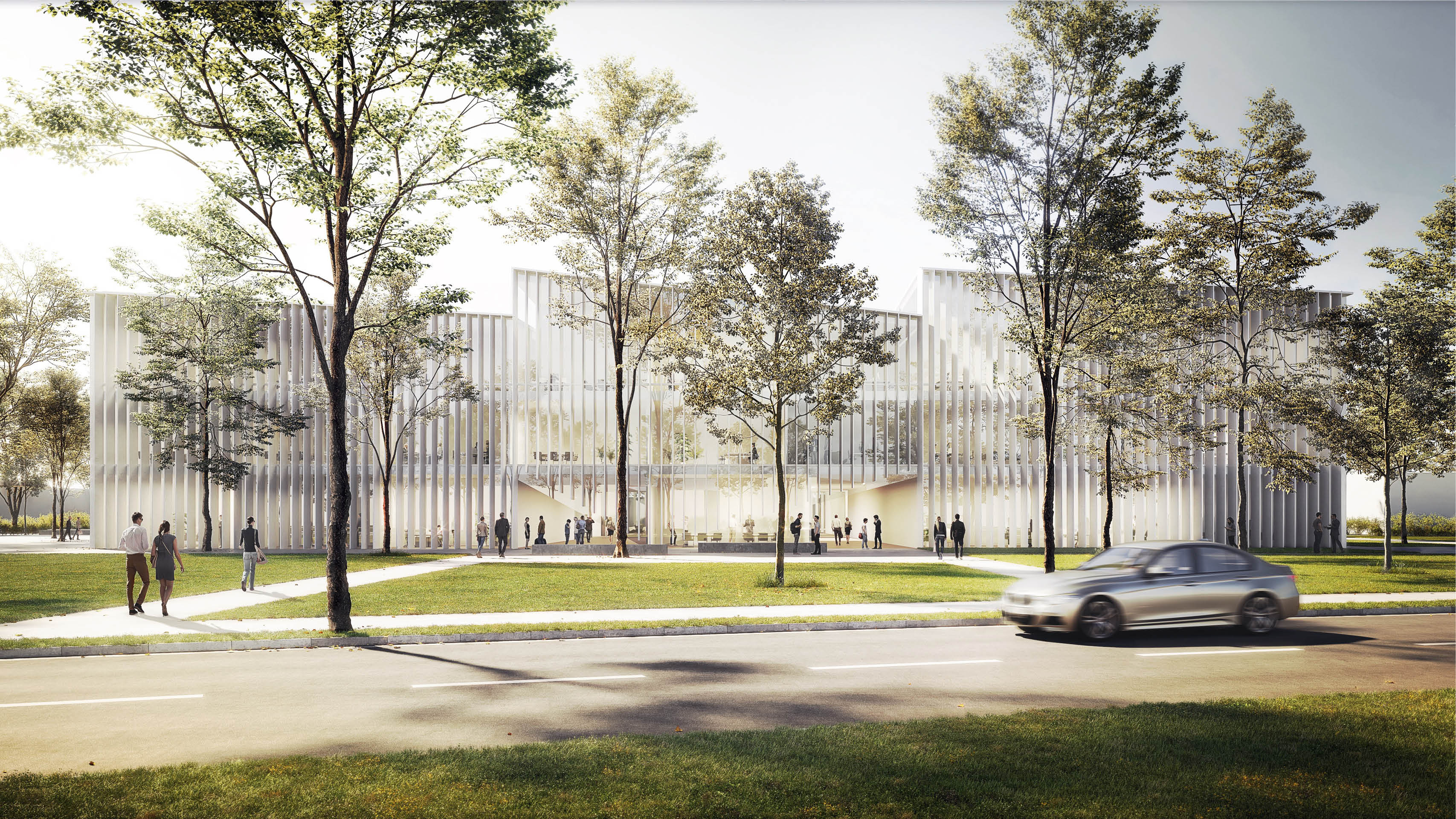 "Der zentrale architektonische Baustein ist das neue FORUM Gebäude. Dieses als Solitär vorgeschlagene Gebäude wird in neun ablesbare Baukörper gegliedert, die gegeneinander versetzte Pultdächer