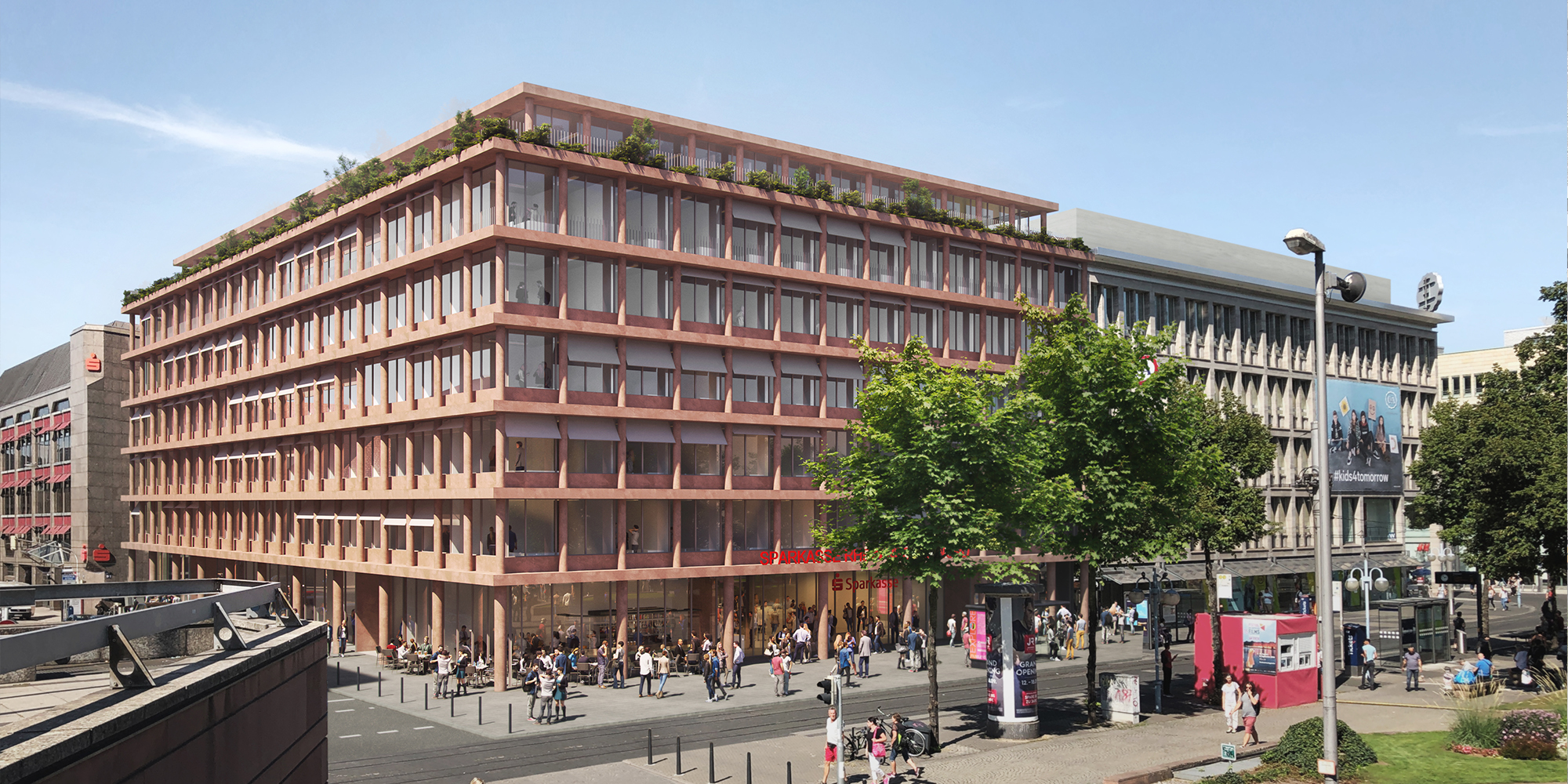 Steimle Architekten gewinnen den 1. Preis für den Neubau des Büro- und Geschäftshauses D1 mit Filial- und Sonderflächen der Sparkasse am Paradeplatz in Mannheim.