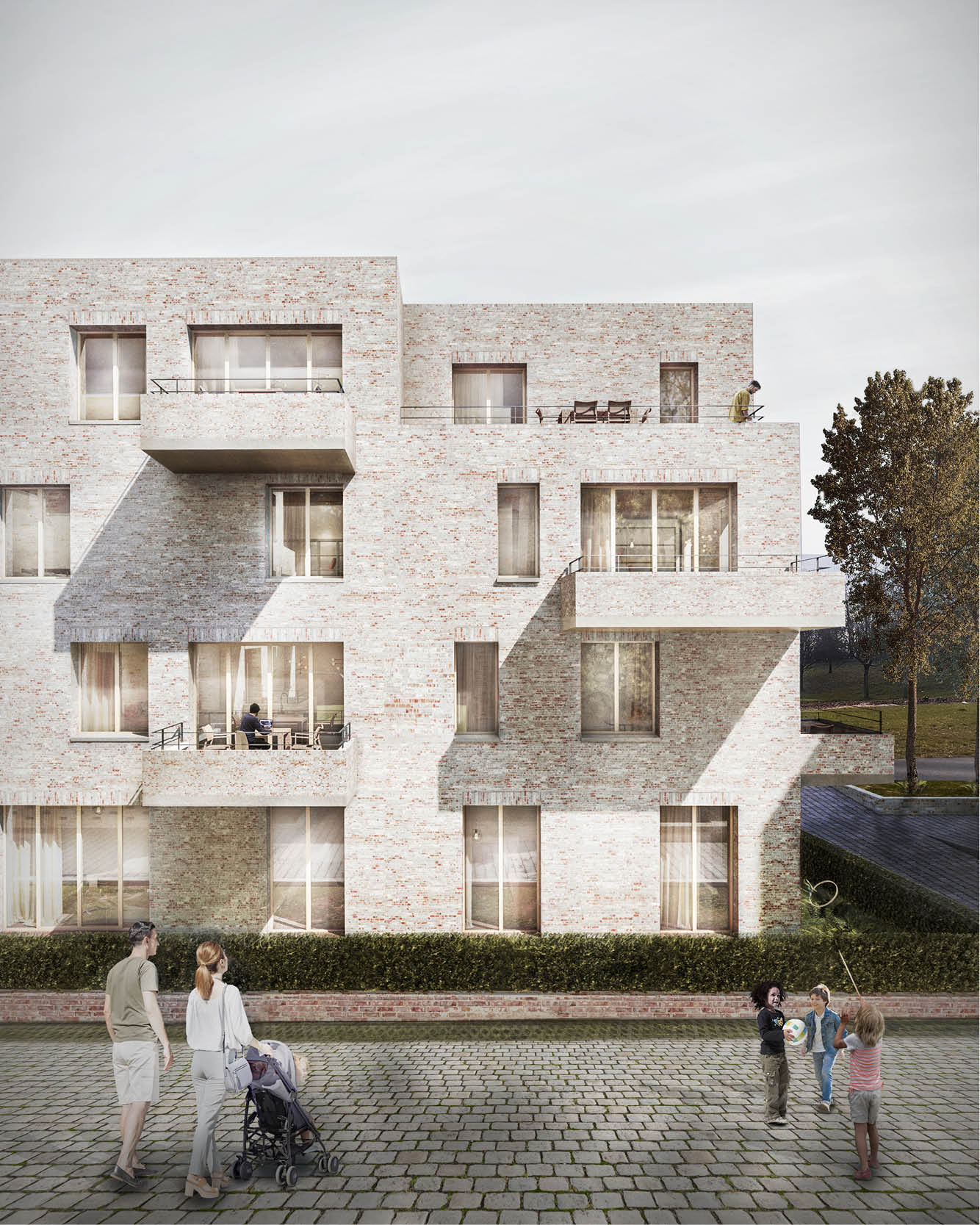 "Der vorgeschlagene Entwurf lässt die bestehende Wohnzeile bruchlos in einer aufgelockerten Hausgruppe