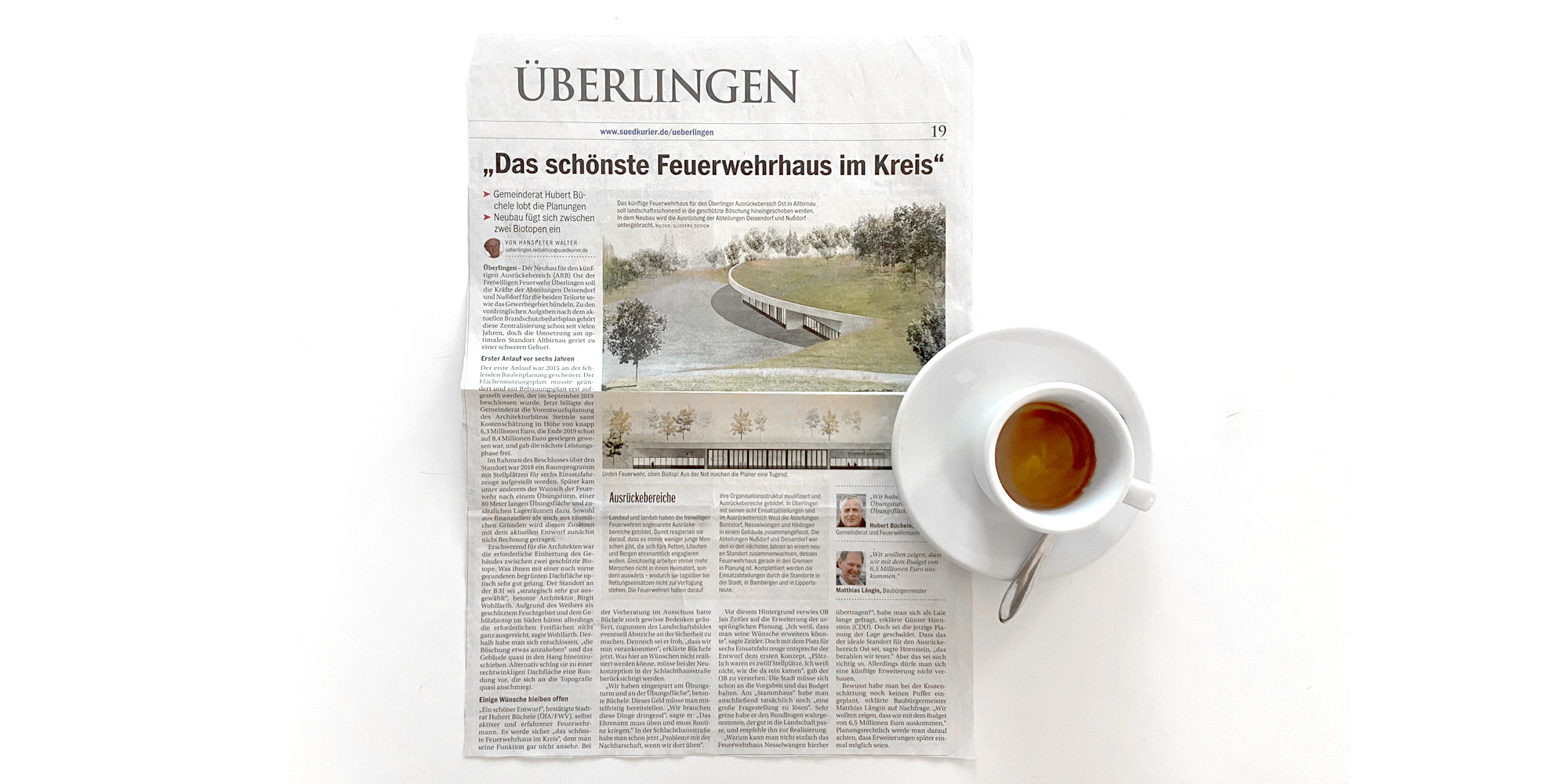 Die Feuerwehr Überlingen ist stolz auf "das schönste Feuerwehrhaus im Kreis" und veröffentlicht einen einseitigen Artikel über die Planung der neuen Feuerwehr.