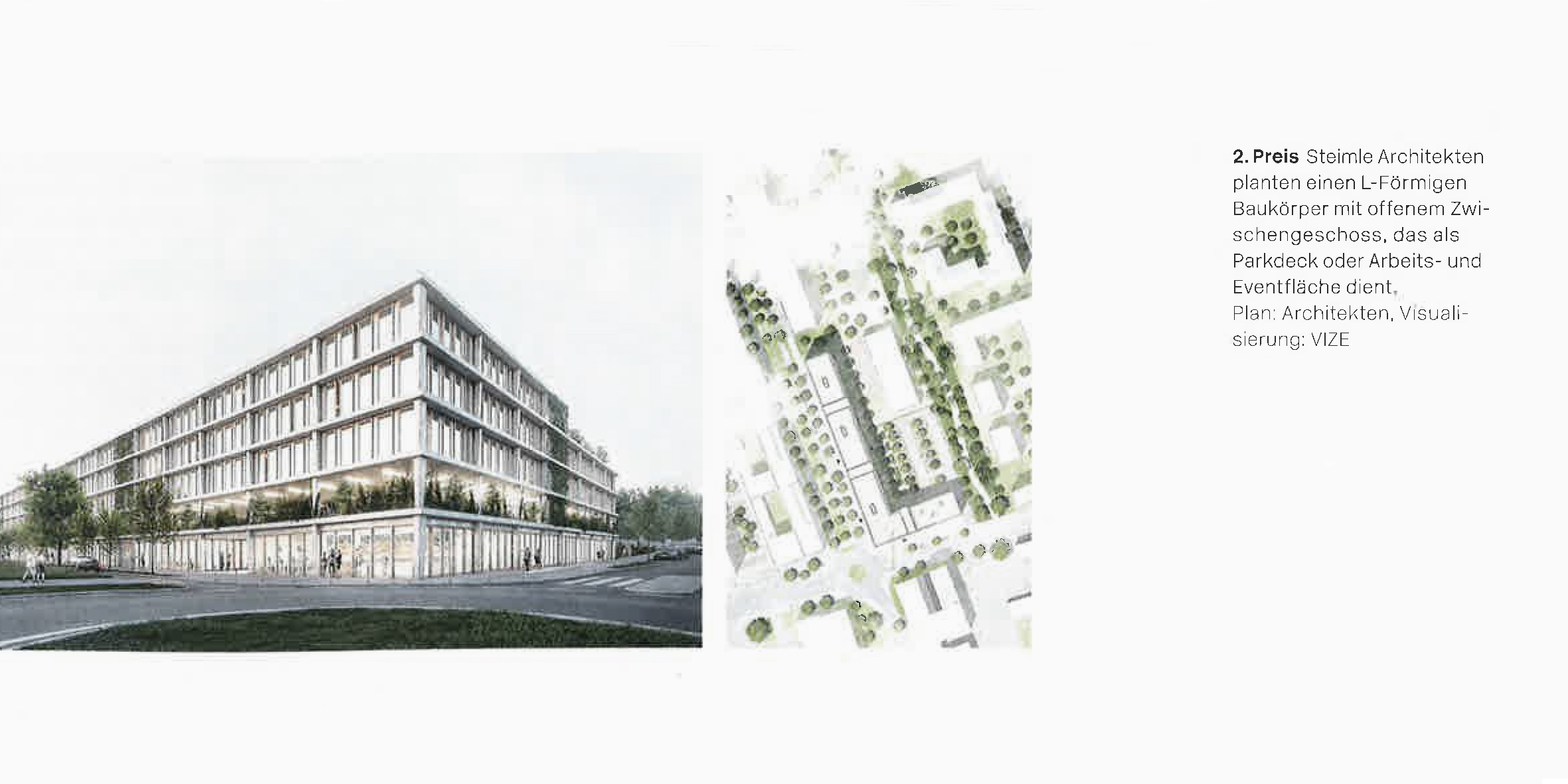 Steimle Architekten erlangten zusammen mit Möhrle und Partner Landschaftsarchitekten den zweiten Preis für den von der Landeshauptstadt Wiesbaden ausgelobten Wettbewerb für ein Bürogebäude.