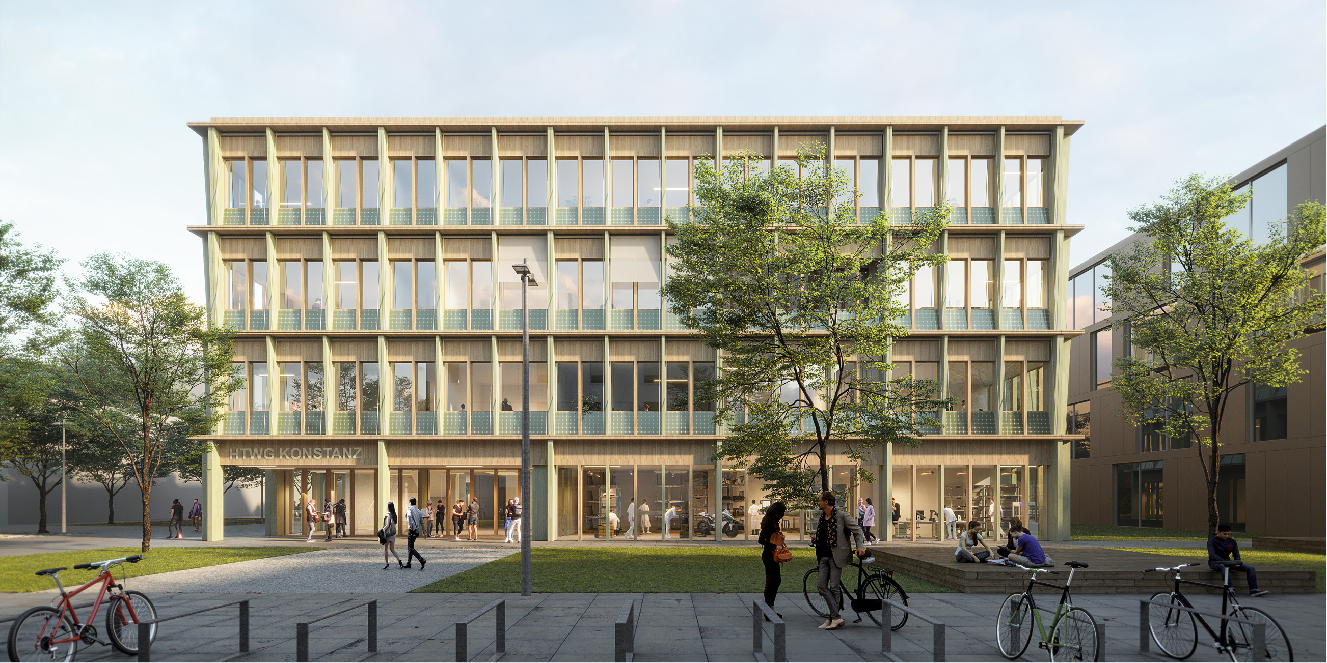 Unter dem Vorsitz von Markus Hammes, Architekt aus Stuttgart, würdigte die Jury unseren Beitrag für das neue Institutsgebäude der HTWG Konstanz mit dem ersten Preis.