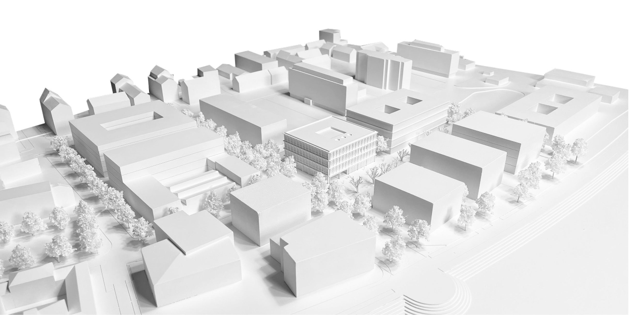 Den sehr städtebaulich geprägten Entwurf für die HTWG Konstanz haben wir in Zusammenarbeit mit