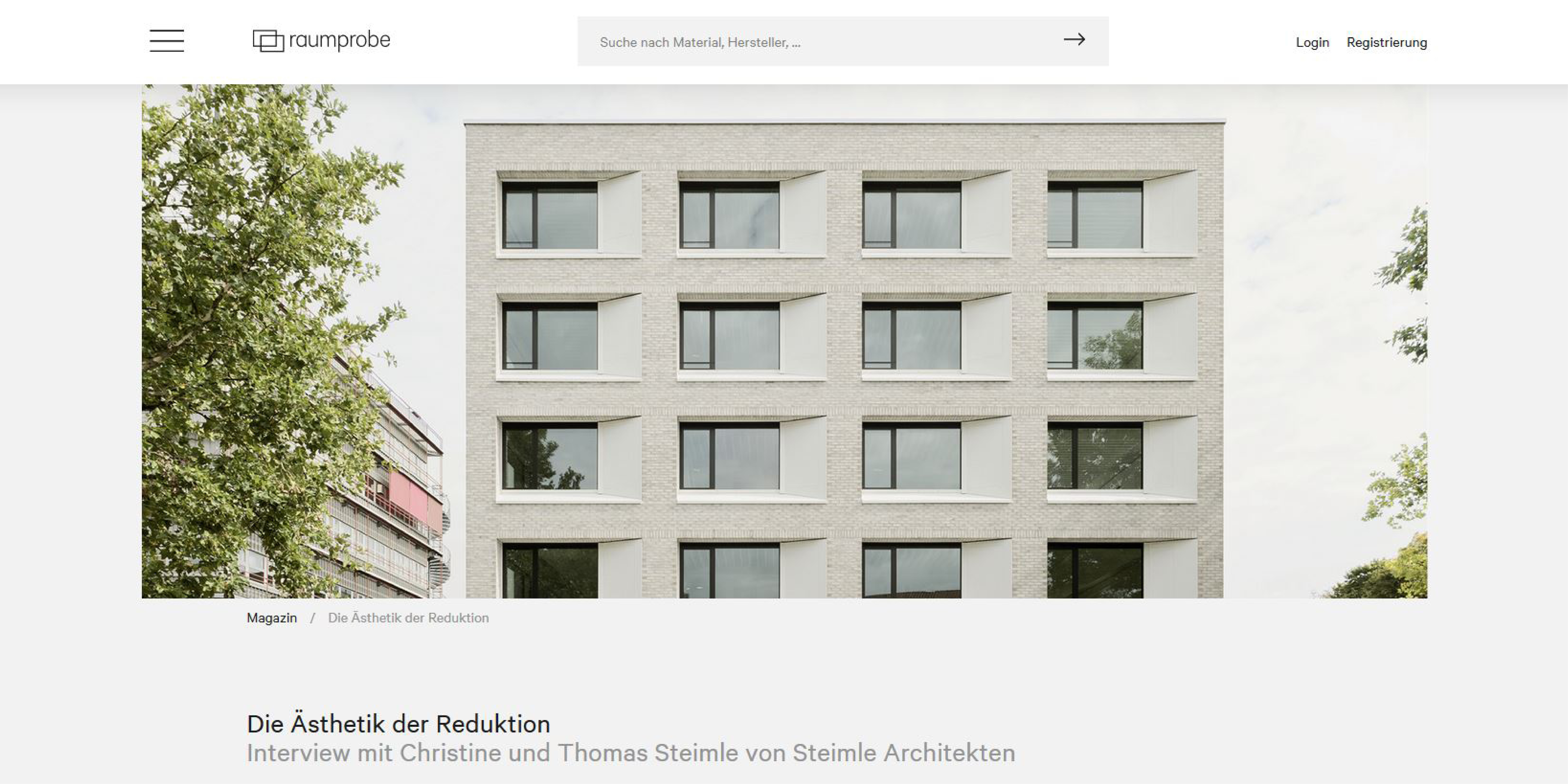 Das Onlinemagazin der Materialdatenbank Raumprobe befragt Thomas und Christine Steimle zu Formensprache, Materialität und ihrem Gestaltungsprozess.