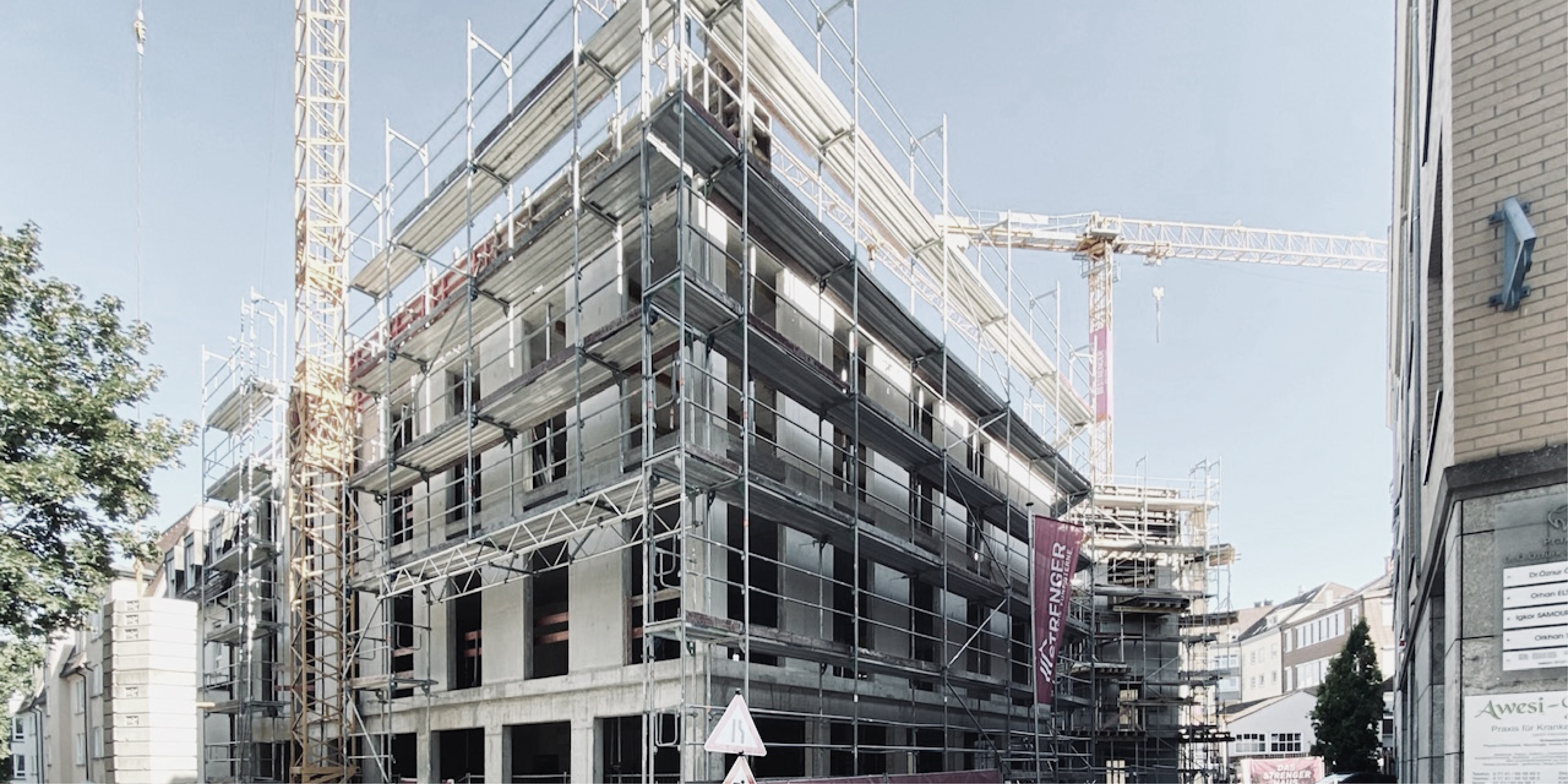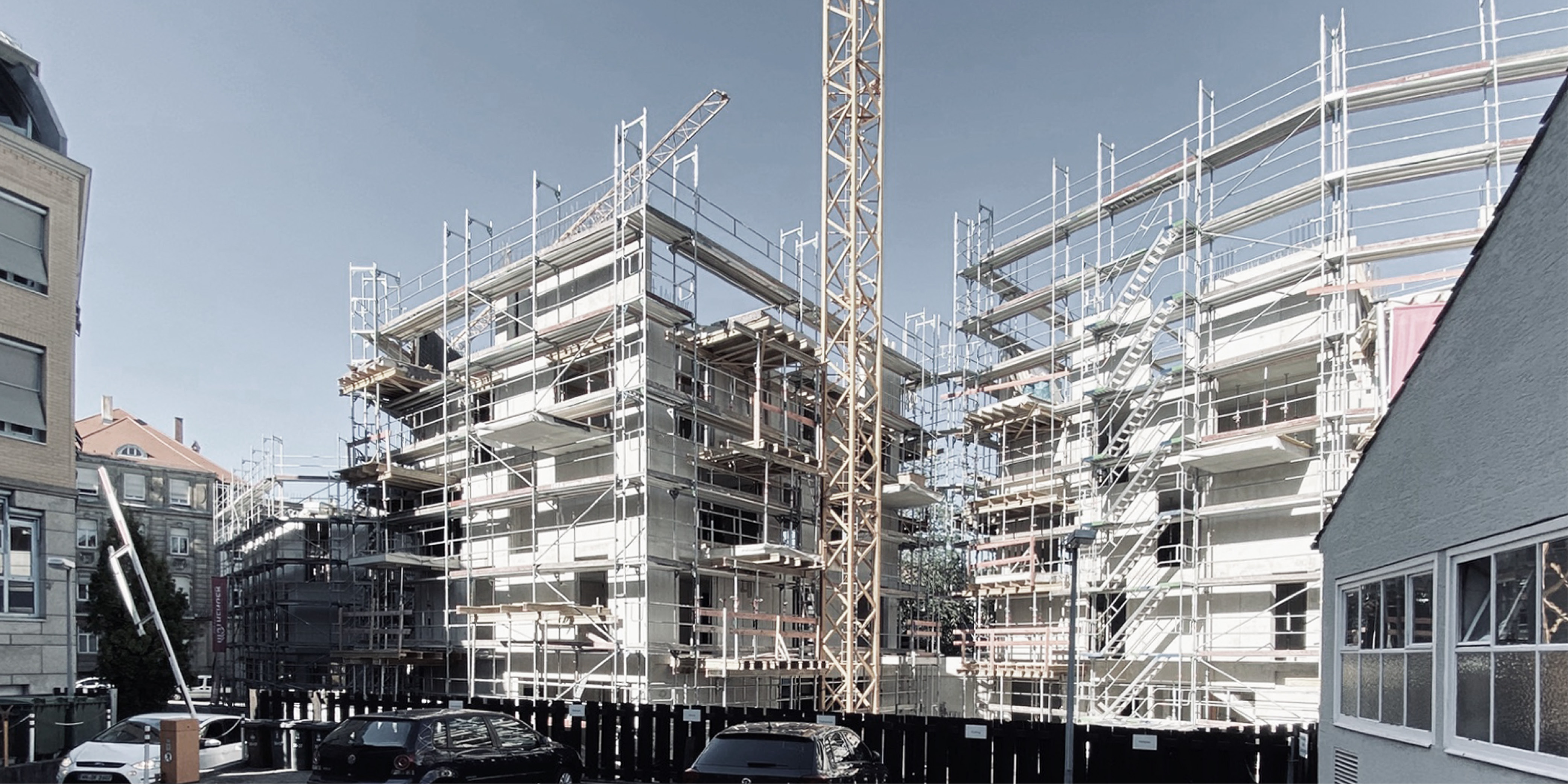 Das hybride Stadtquartier in Ludwigsburg nimmt Gestalt an. Die neue Urbanität der Hofsituation lässt sich schon sehr schön erkennen.