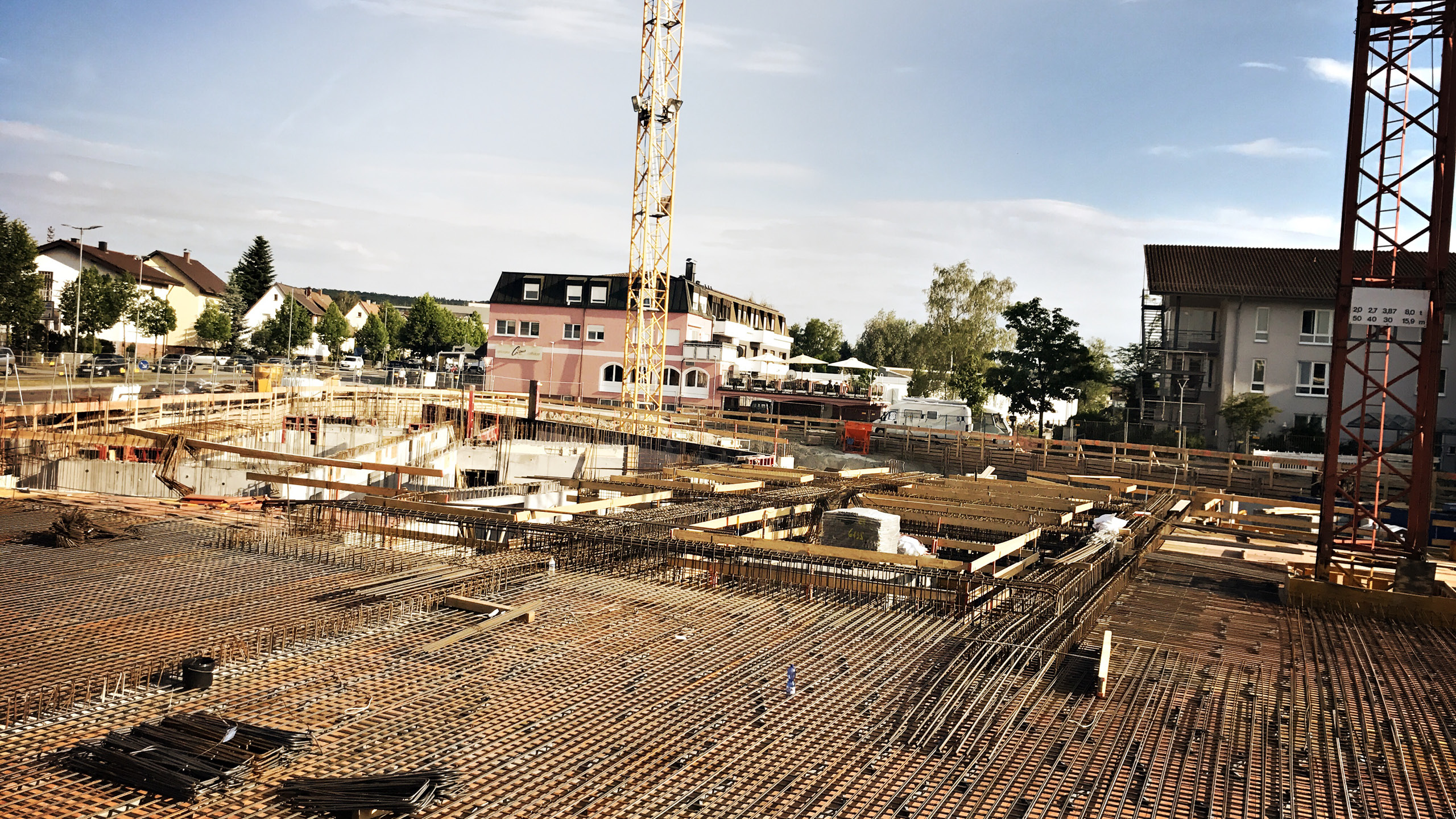 In direkter Nachbarschaft zur Kulturhalle wird an der B10 bis Mitte 2018 das neues Rathaus mit Tiefgarage, externen Büro- und Gastronomieflächen entstehen.