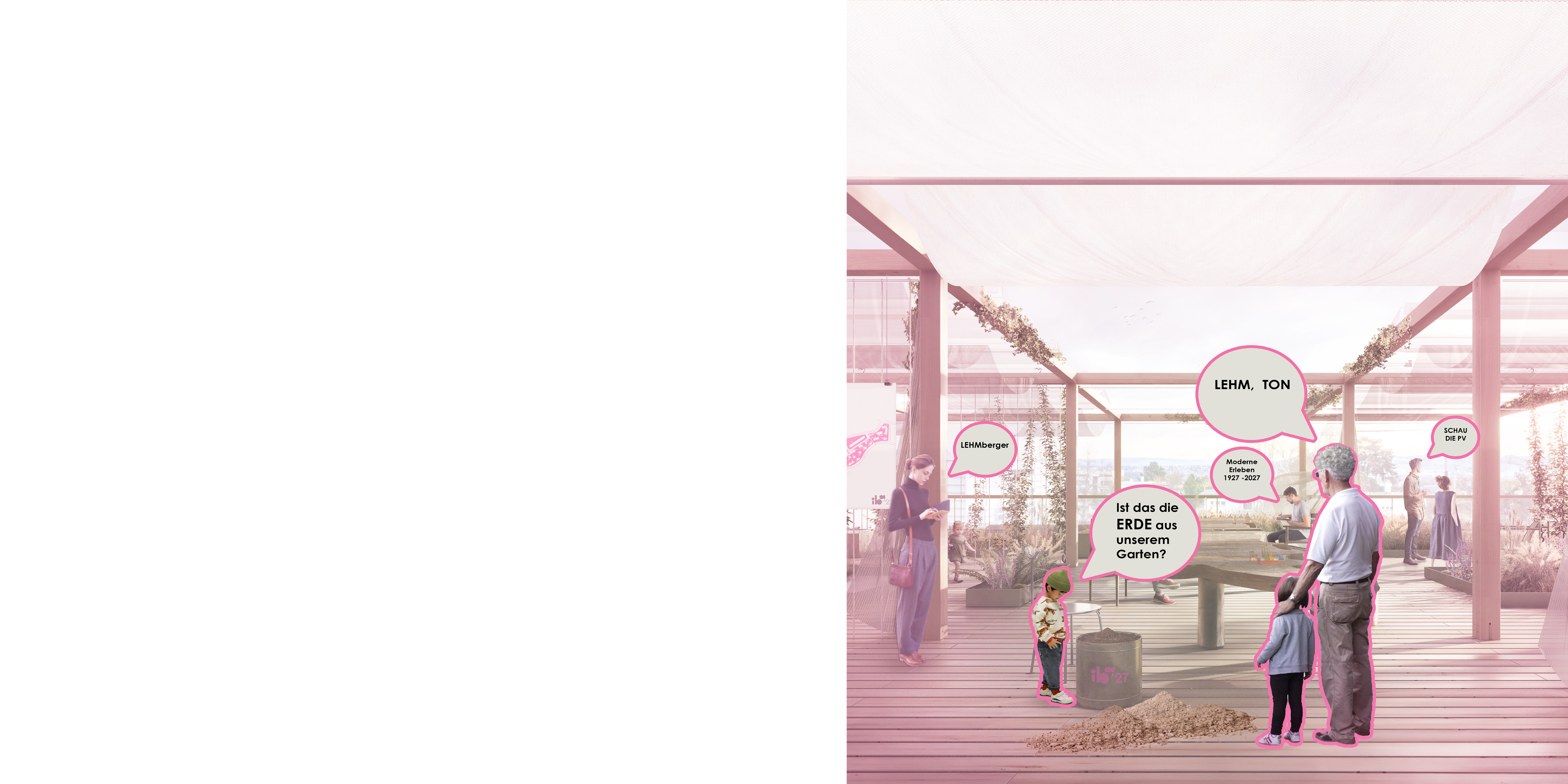 Im Zuge der IBA'2027 schrieb die Stadt Stuttgart einen Wettbewerb für das Besucher- und Informationszentrum Weissenhof aus. Gemeinsam mit der Karl Köhler GmbH, Engelsmann Peters Ingenieure, Tichelmann Barillas Ingeniere, Planstatt Senner Landschaftsarchitekten, ee-concept, Gebrüder Benzinger und Lehm Ton Erde (Martin Rauch) entwickelte Steimle Architekten einen flexiblen Baustein aus Lehm und Stahl, der unter dem Leitbild seiner Umgebung als zukunftsweisendes Leuchtturmprojekt auf dem Weissenhof stehen sollte.