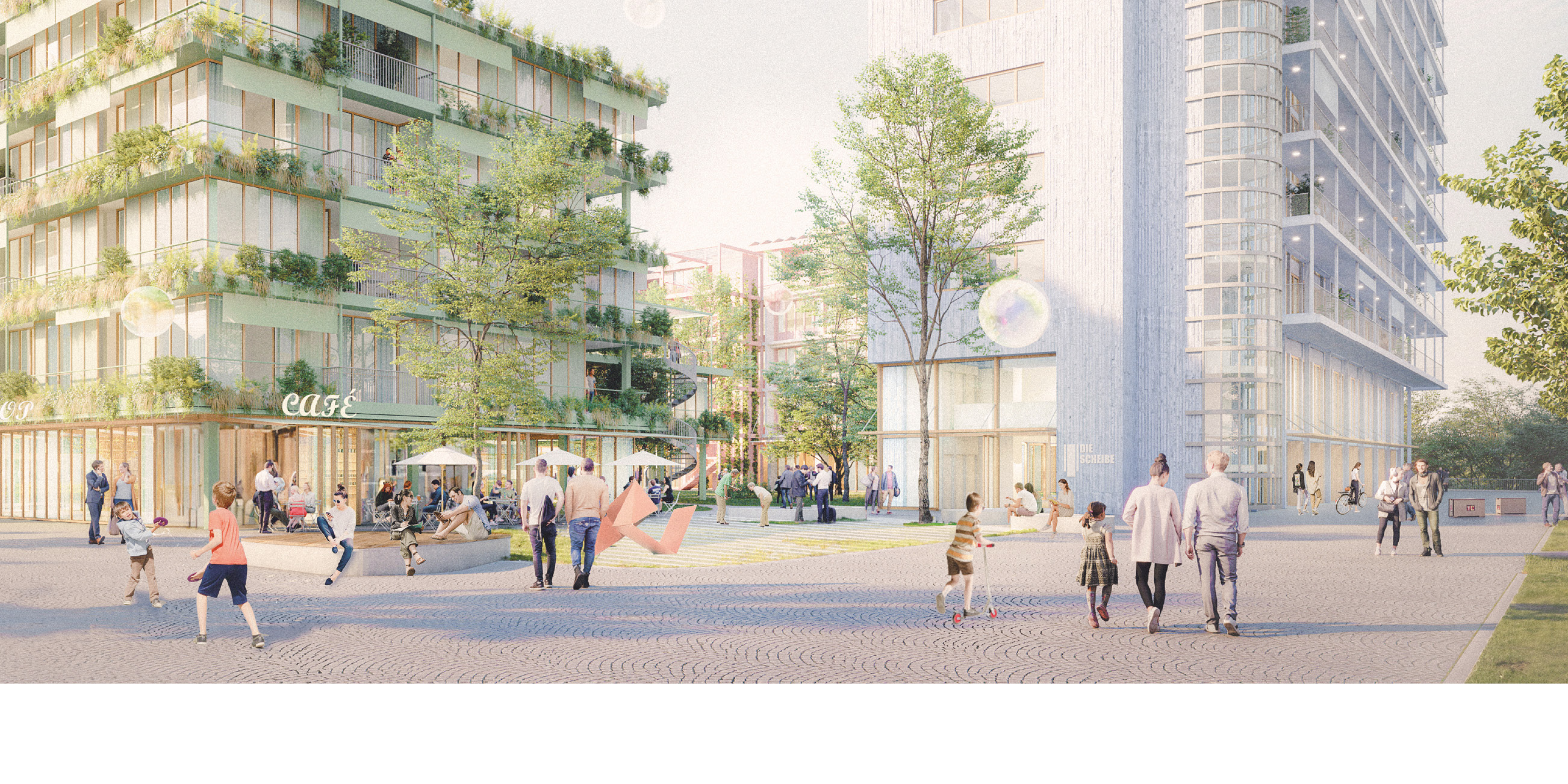 Behutsam, ist unsere Antwort. Um ein Nachhaltiges, ressourcenarmes Quartier zu schaffen, dass zukunftsweisend eine Richtung vorgibt, haben wir uns so nah wie möglich am Bestand orientiert. Er sollte überall dort erhalten, transformiert und weiter genutzt werden, wo die Struktur es zulässt.