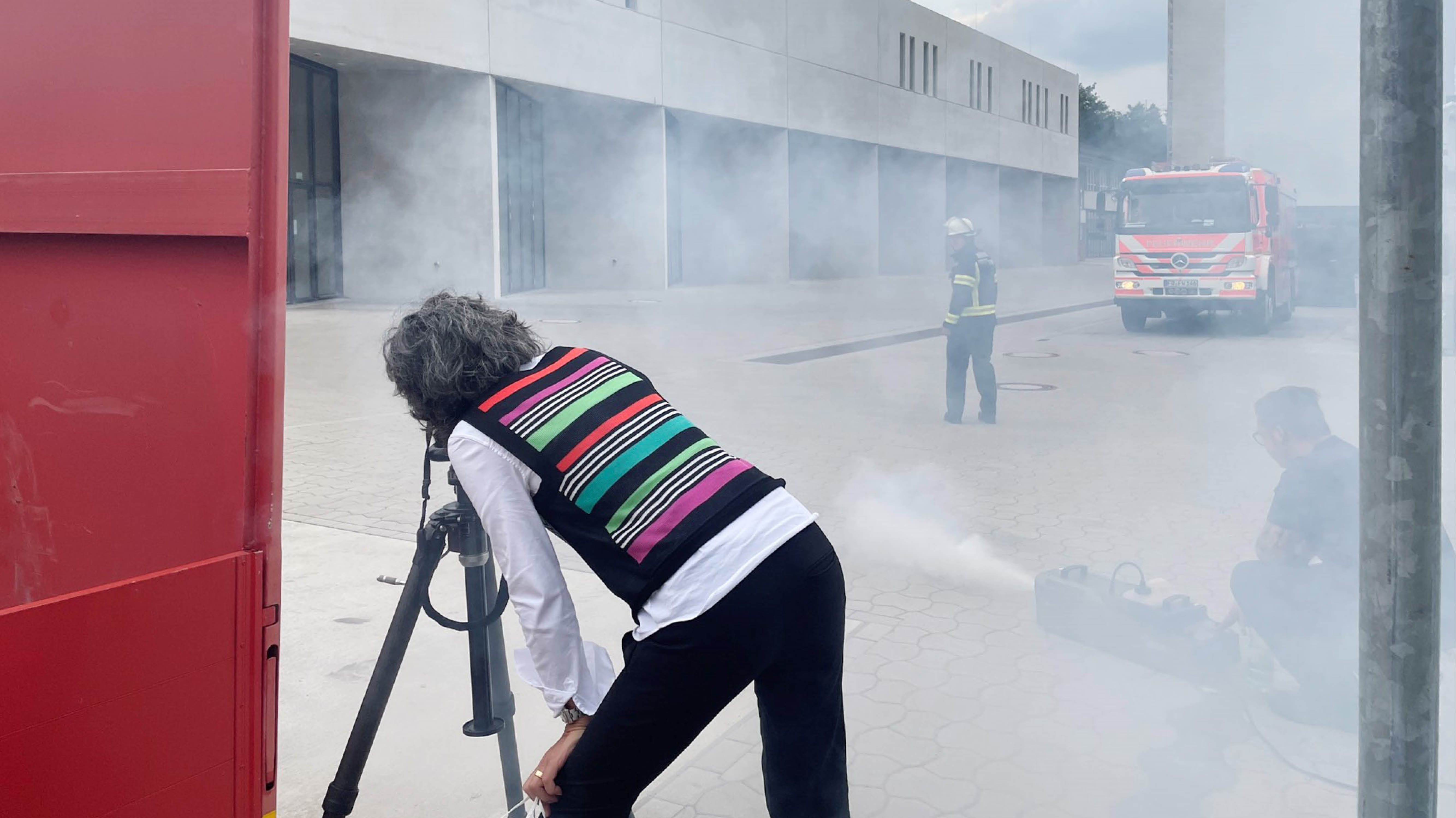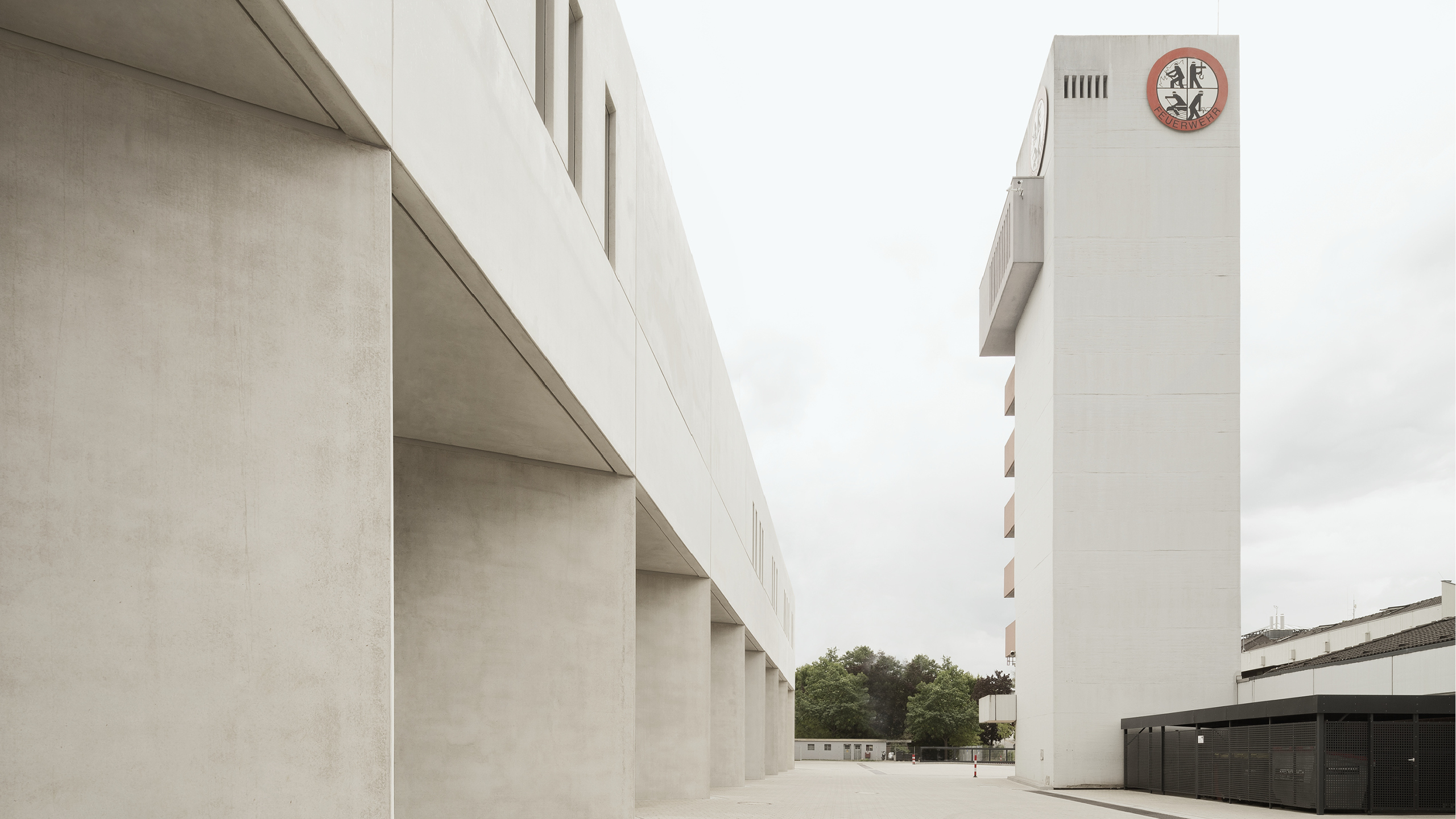 So kommt der Neubau seiner stadträumlichen und städtebaulichen Bedeutung als Eingangssituation zum Hof und als prägnantes Gegenüber zum Schlauchturm, dem Wahrzeichen der Feuerwehr, nach.