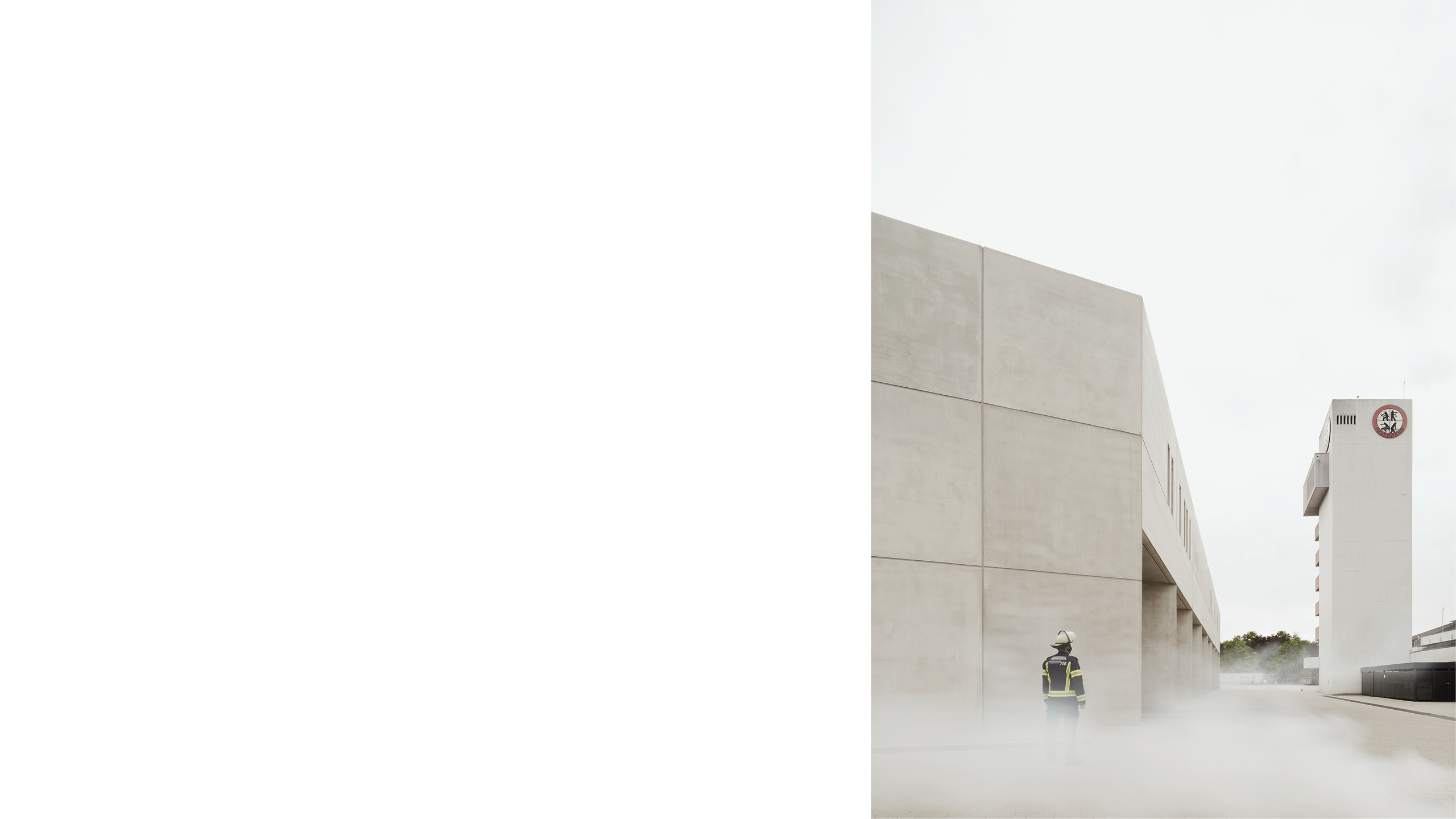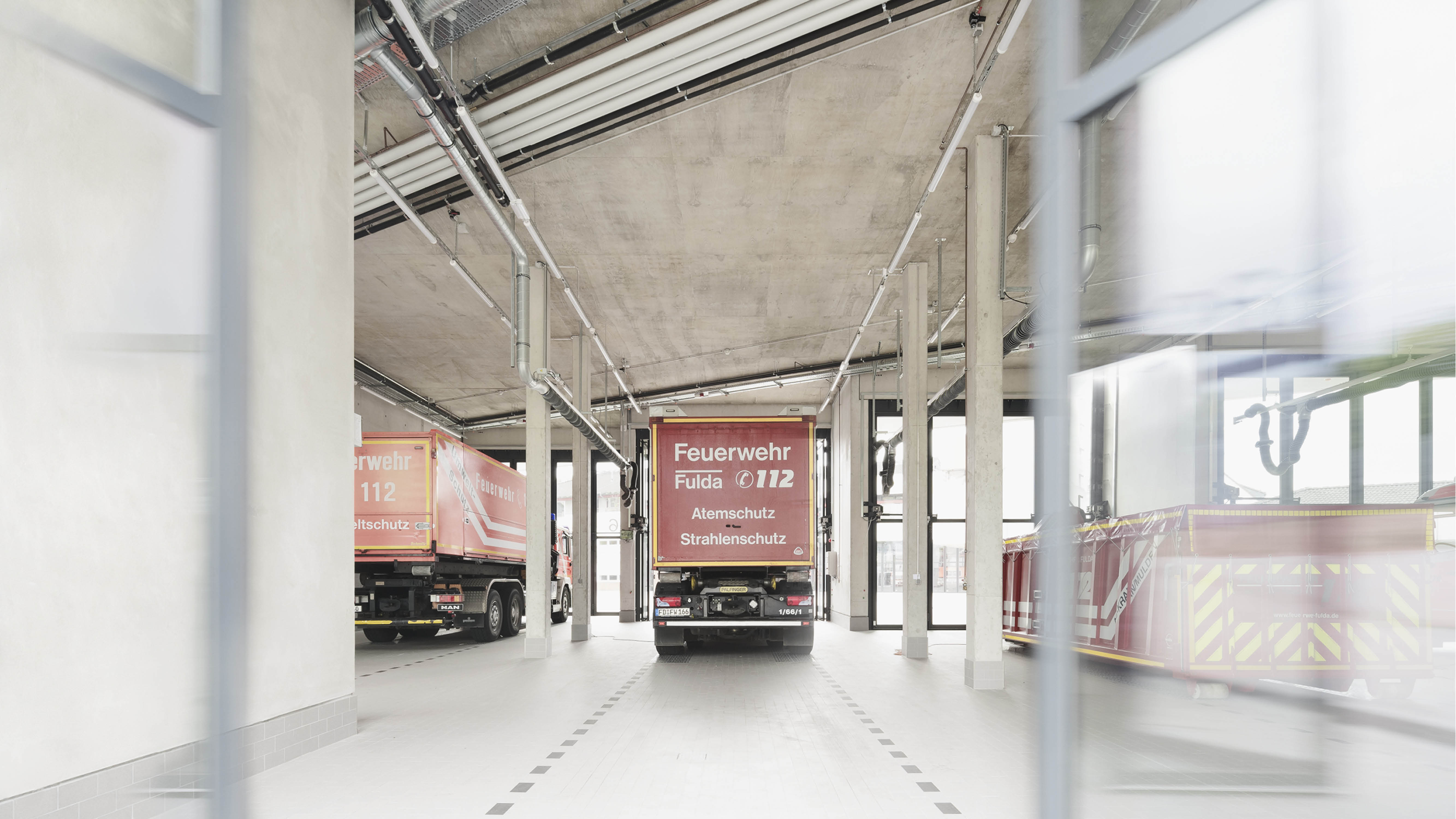 Der Neubau der Rettungs-Leitstelle der Feuerwehr der Stadt Fulda, ein länglicher, geschuppter Kubus übernimmt die Ausrichtung des unmittelbar angrenzenden südlichen Bestandsgebäudes, der Sonderzughalle und fügt sich harmonisch in das Grundstück ein.