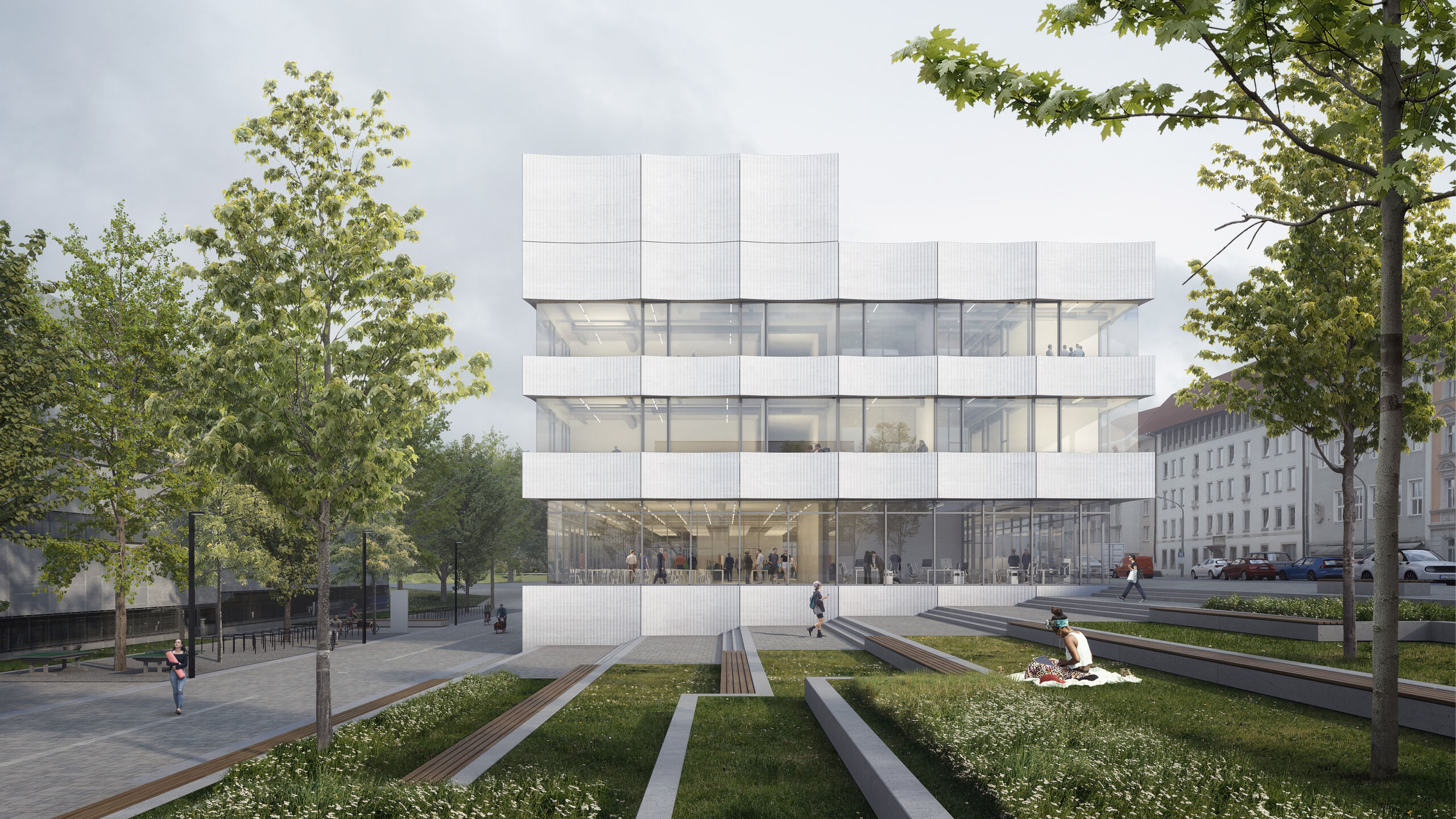 The site is directy next to the Englischer Garten in Munich Schwabing, on the old area of the veterinary medicine. The architecture is impressed by the calm volume. Bright and simple concrete waveelements structure the facade and show the interior structure to the outside. With there subtle, vertical reliefs they establish a connection to the first stone of the physic campus - the nano institute. The clear colors of the bright city are shown in the light facade of the forum. The building enable deep insights through the house and create an entrance to the new campus.