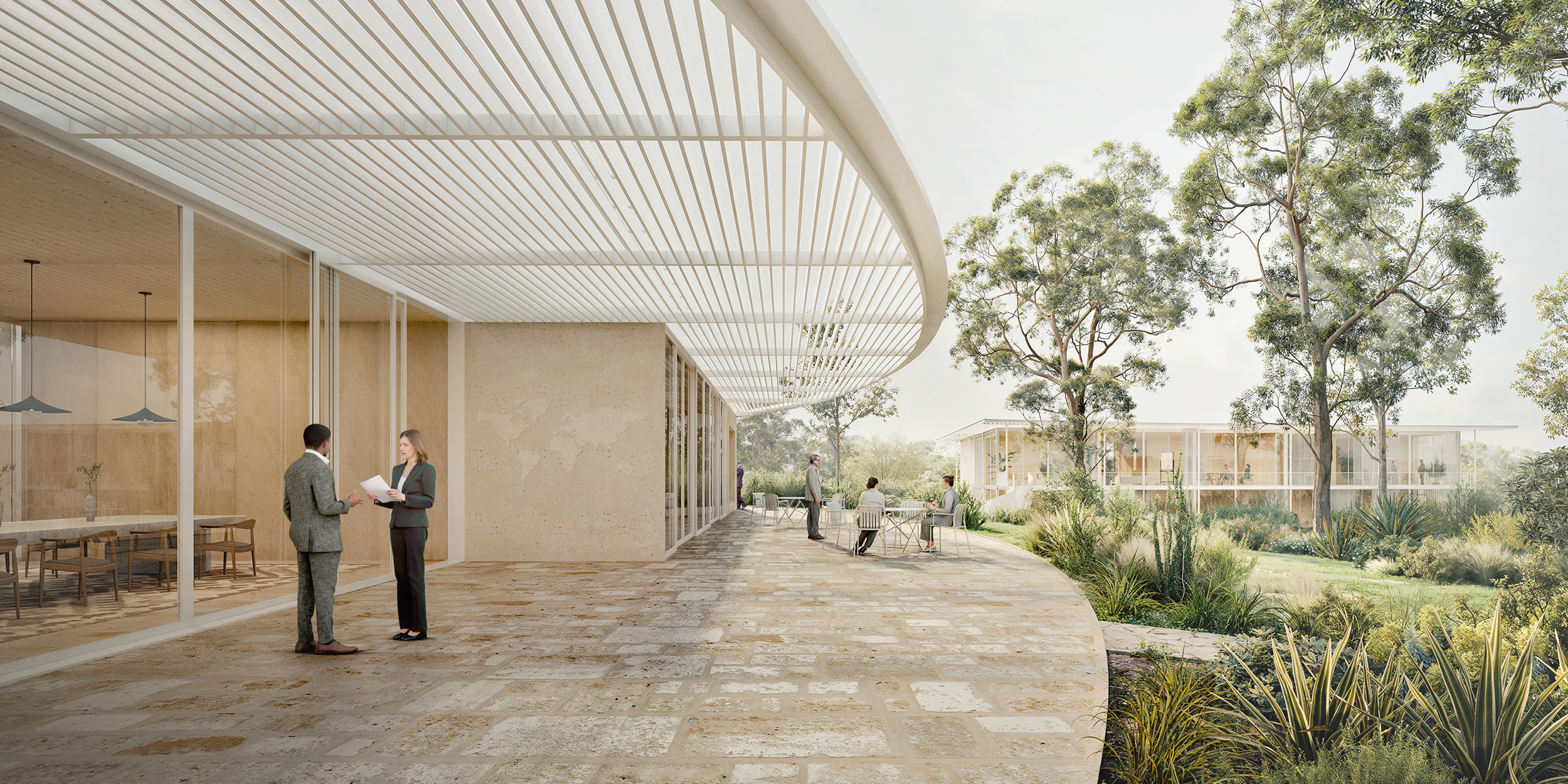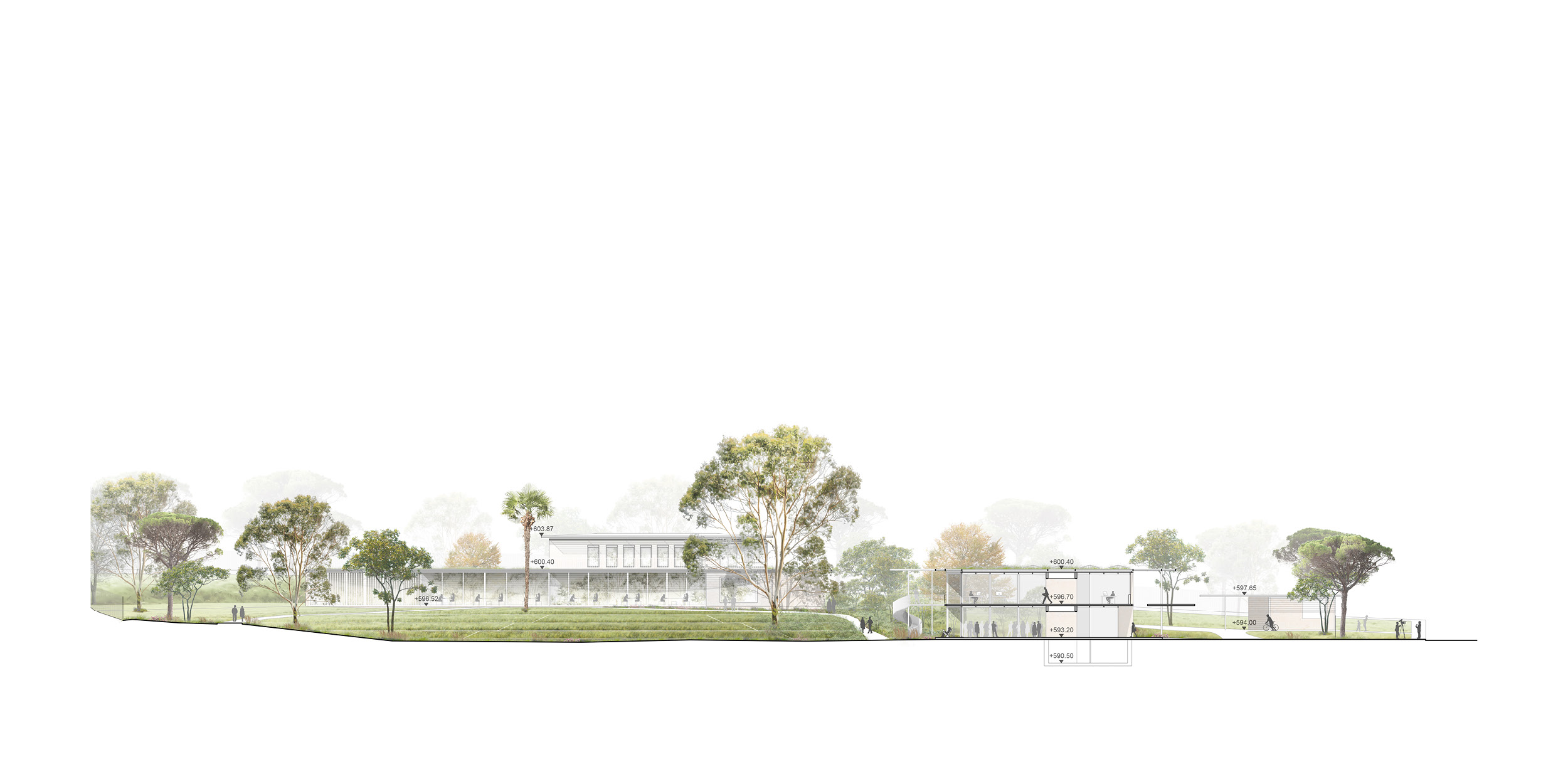 high-quality park and symbolising harmony between architecture and nature,