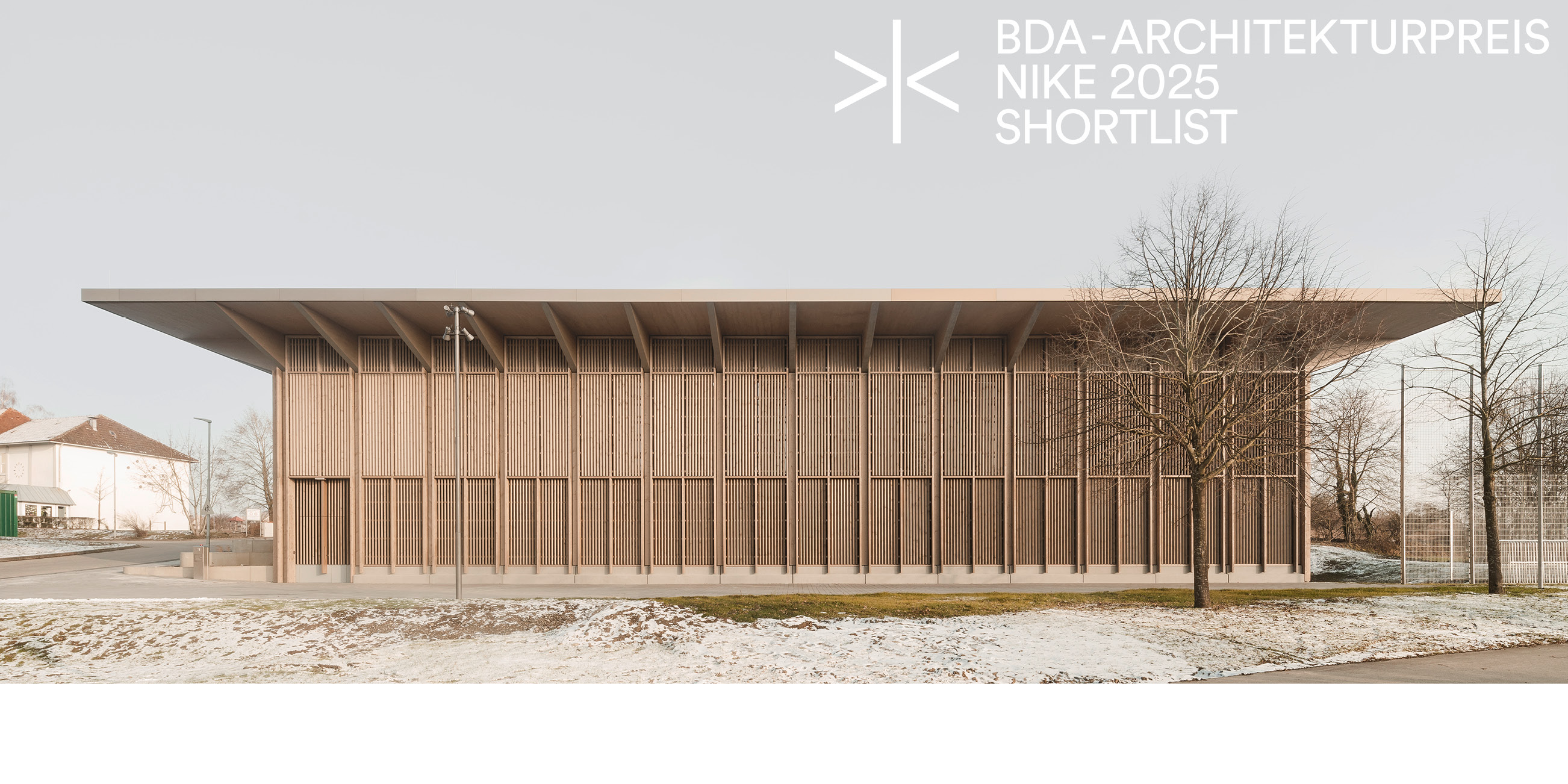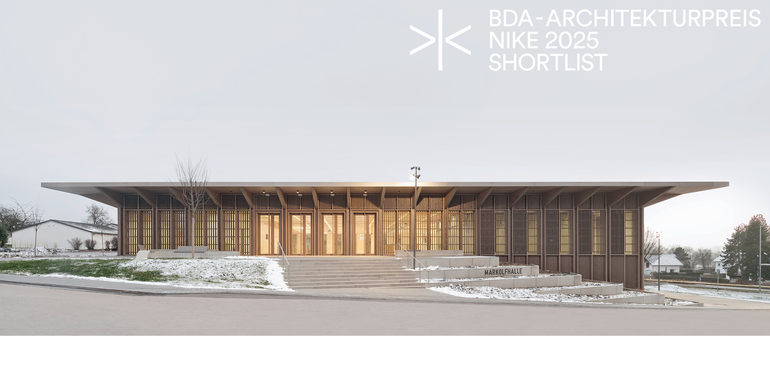The Stuttgarter Zeitung newspaper calls it the “Architecture Oscar,” and for us as architects, it is an award that places particular value on our work. We are therefore delighted about the nomination and our place on the shortlist for the 2025 Nike Architecture Prize with the Markolfhalle on Lake Constance. On September 11, 2025, the official ceremony in Erfurt will announce the selected winners.