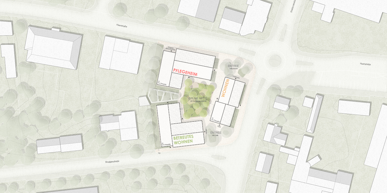 The new Heerstraße 79 site is an important part of the urban development at the southern entrance to Rottweil. It marks the transition from the urban densification along Heerstraße to the small-scale development in the west, while also creating a new point of identity. The urban development concept is based on openness and