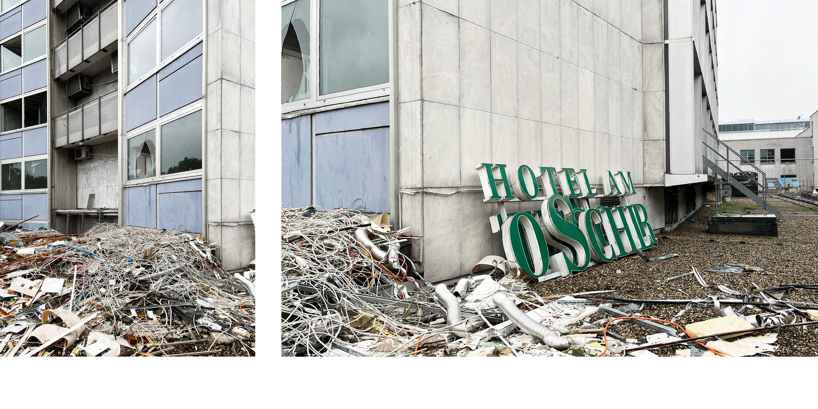 The Hotel am Schlossgarten stands like a rock in the surf, patient and calmly observing the construction site activity, waiting for whatever may come.