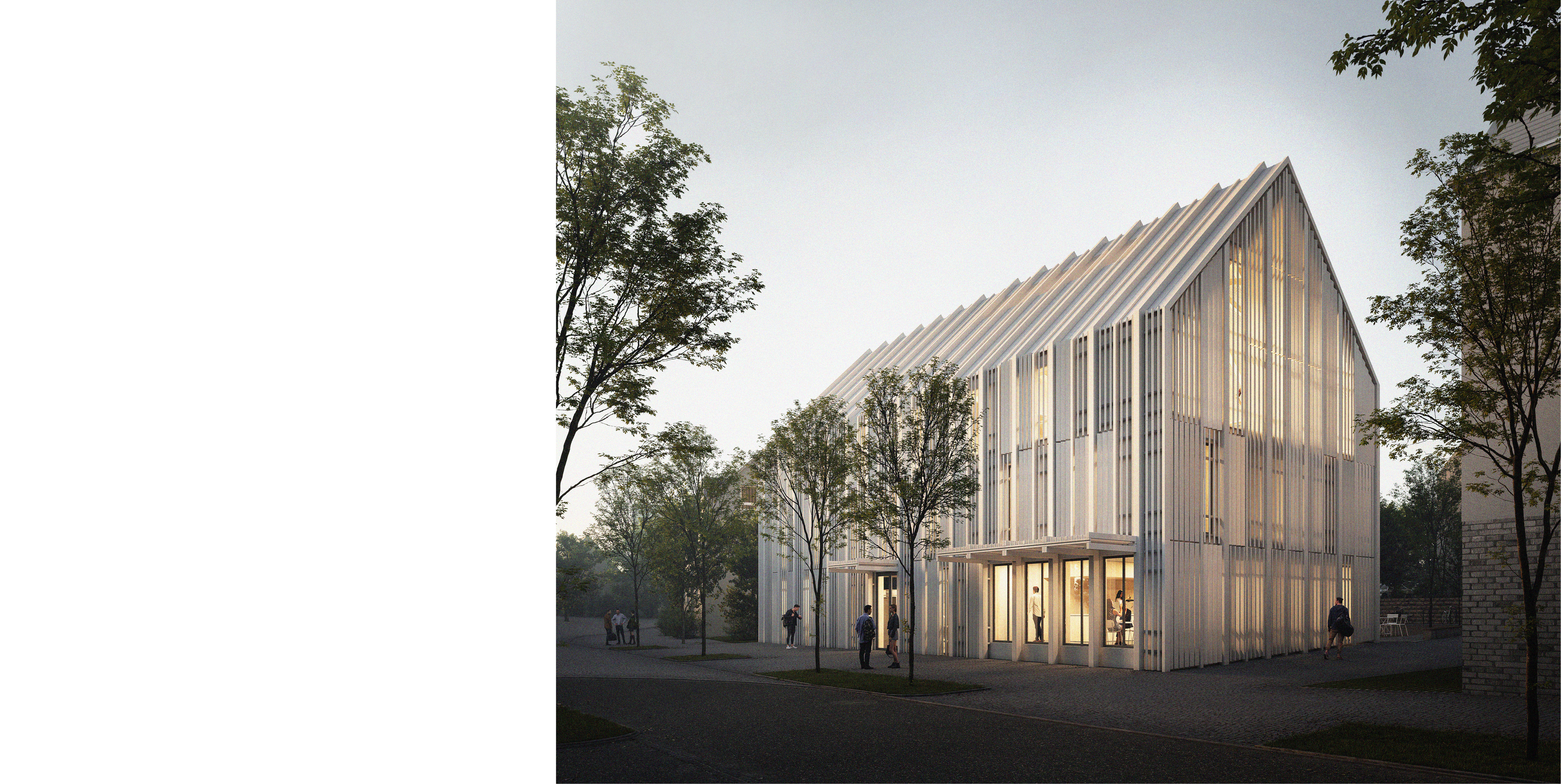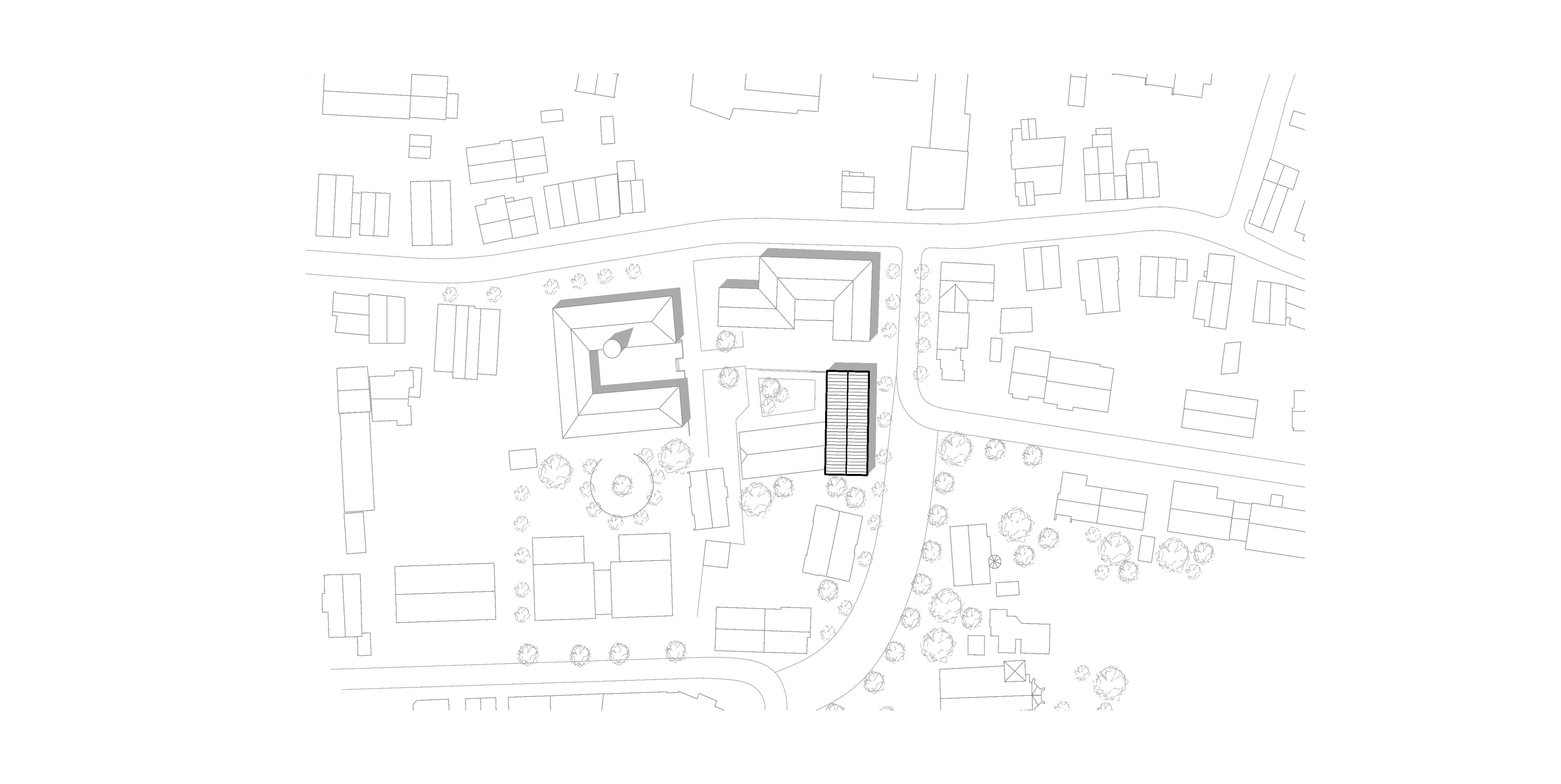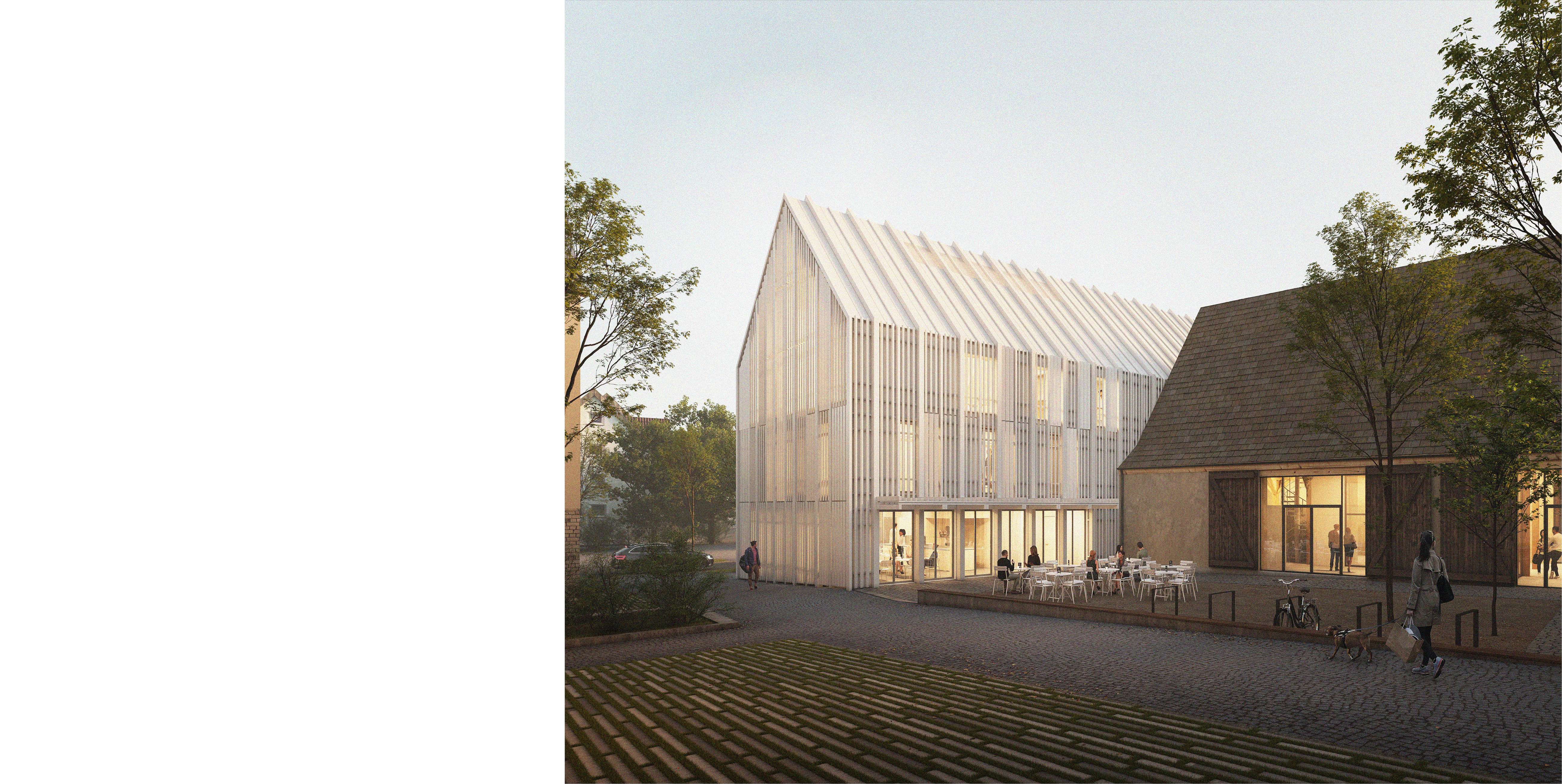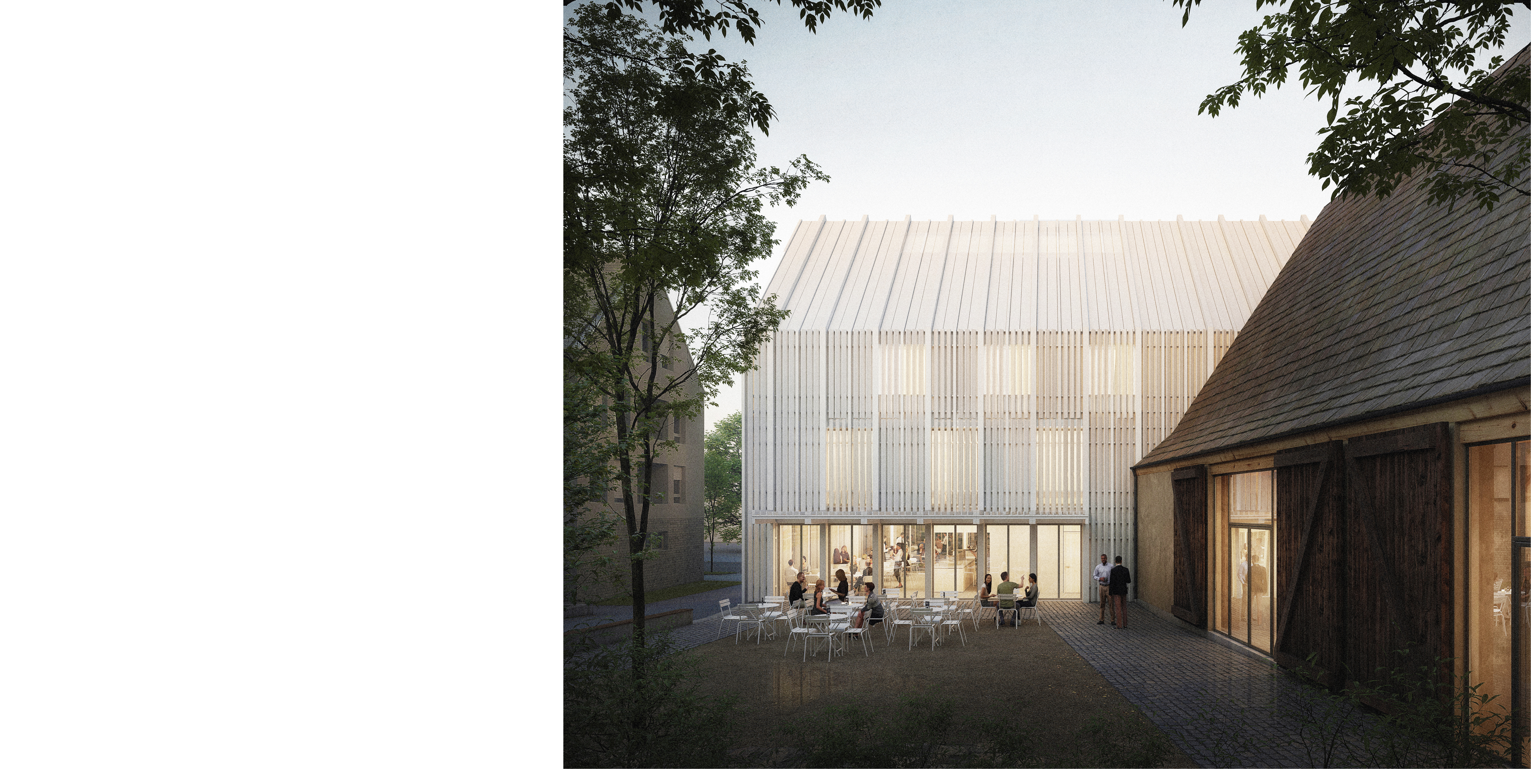 In the immediate vicinity of the historic Stammheim Castle, the new Stammheim district house of the city of Stuttgart is being built. It is intended to be a public building for civic activities, club life and meetings with the vision of placing community life at the center. This vision is underlined by its openness and transparency and the inviting café facing the church square and castle courtyard. With the café on the first floor and the community and group rooms, as well as the citizens' hall on the upper floors, the result is a thoroughly open building with flexible uses for a variety of users.